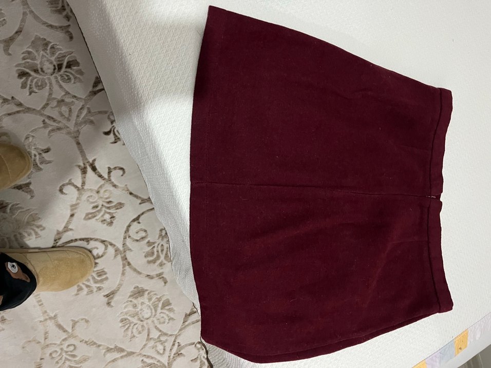 Fermuarlı, bordo renkli, parlak yüzeyli, midi boy, dar kesim etek. Minimalist ve çağdaş tarzda, günlük kullanım için uygundur.