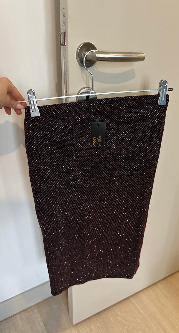 Bordo renk, midi boy, velcro detaylı hamile eteği. Yumuşak sentetik kumaştan, rahat ve şık sokak stili için uygun. Romantik buluşmalar için ideal.