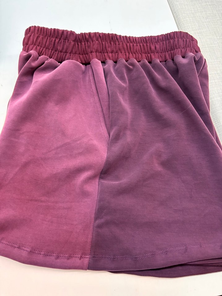 Parlak görünümlü, lastikli beliyle rahat kesim bordo hamile midi şort, günlük kullanım için konforlu ve sade stil sunar.