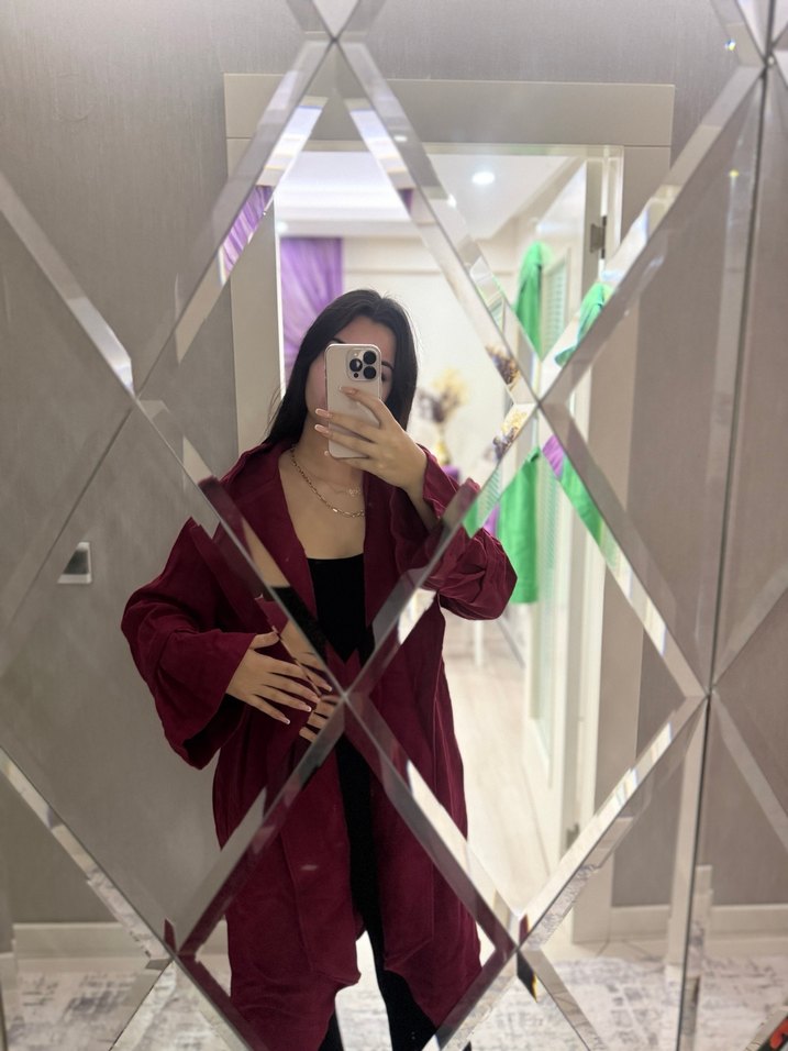 Bordo midi uzunlukta, salaş kesim ve drapeli tasarıma sahip kadın ceket. Uzun kollu, etnik desenli, satenimsi kumaştan, günlük kullanıma uygun.