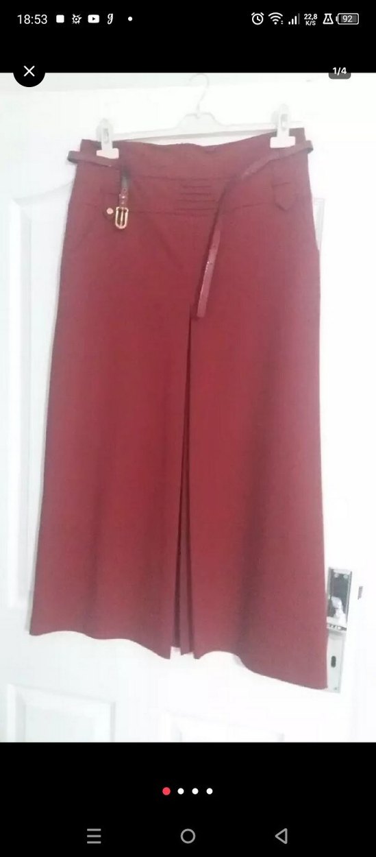 Bordo midi uzunlukta, kemerli ve düz kesim kadın eteği. Ofis için uygun, sentetik dokulu kumaştan yapılmıştır. siyah rengi de var 40 neden yeni