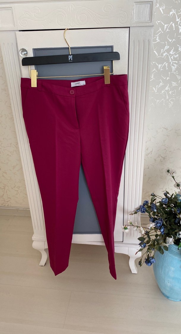 Bordo midi uzunlukta, regular fit kadın kumaş pantolon. Ofis için uygun, rahat ve şık, trendi casual stiline uyum sağlar.