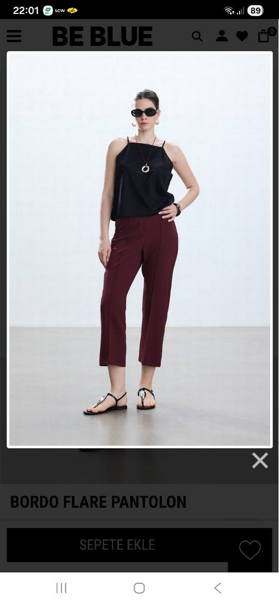 Bordo Midi Kadın Kumaş Pantolon Flare Beblue Manuka Zara Hm