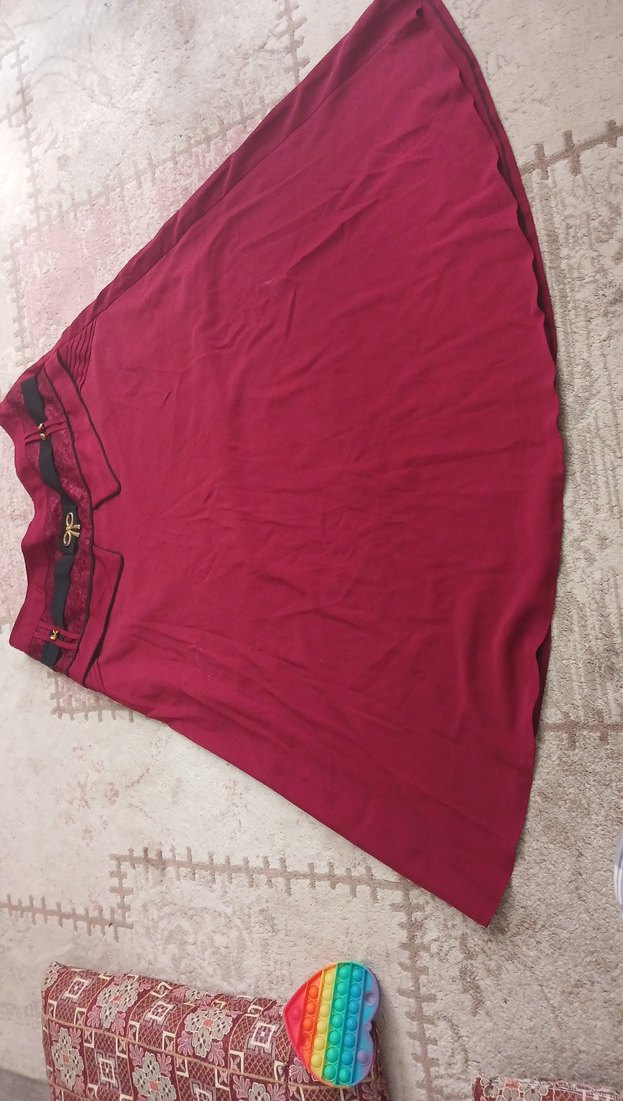 Bordo midi boy, salaş kesim ve drapeli detaylara sahip kadın eteği. Sentetik kumaştan üretilmiş, günlük kullanıma uygun rahat bir parçadır.