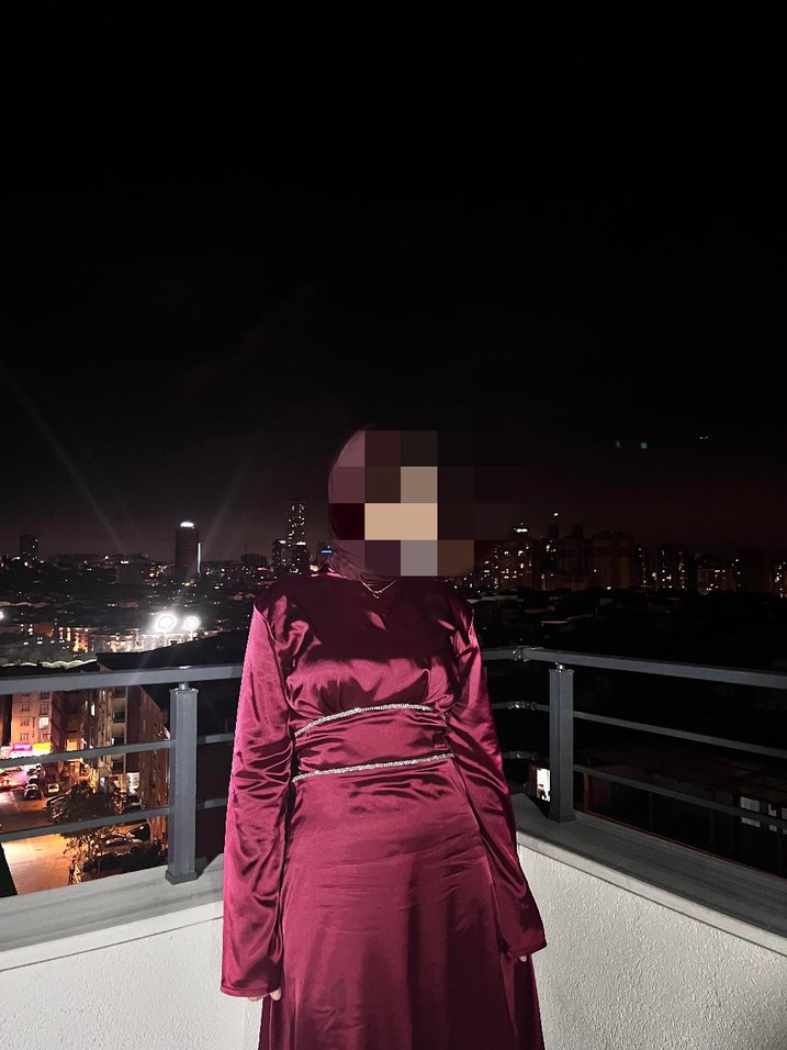 Bordo renkli, uzun kollu ve midi boyda, vücuda oturan kadın elbisesi, avant-garde goth tarzını yansıtıyor.