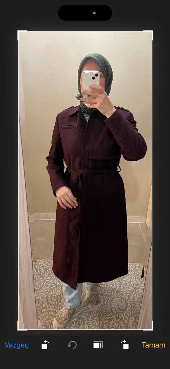 Bordo midi uzunlukta, kemerli, uzun kollu, klasik kesim kadın kışlık mont. Yumuşak ve sıcak kumaştan, günlük kullanıma uygun.hiçbir sıkıntısı yok boy 110 cm 40 beden