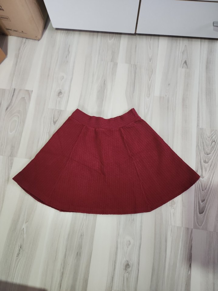 Bordo renkli,beli oturan midi etek. Yumuşak sentetik kumaştan, günlük sokak stiline uygun rahat bir model. bel 34 boy 43 cmdir renk en son resimdeki gibi