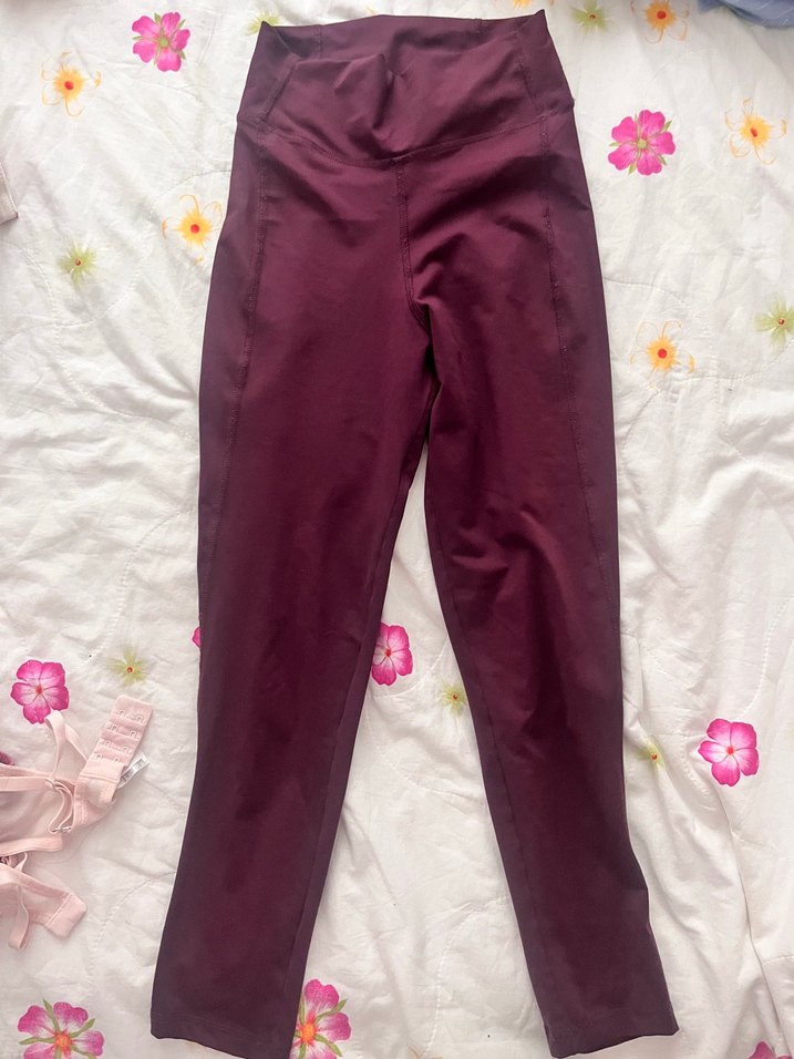 Fermuarlı detaylı, bordo renkli, sentetik kumaştan yapılmış, spor ve sokak tarzına uygun, kadınlar için midi boy tayt. ♀️