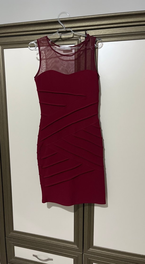 Bordo Mini Pilili Kadın Elbise