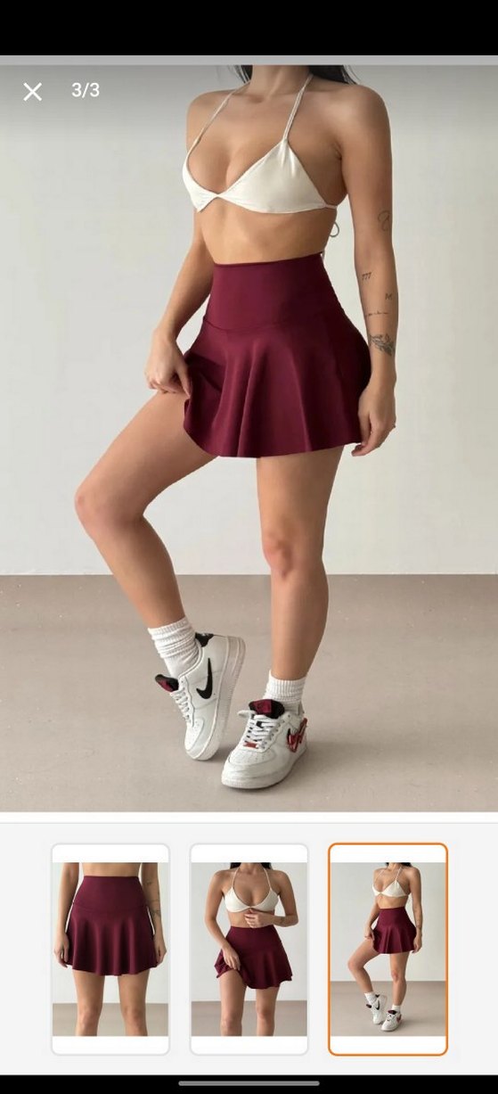 Bordo renkli, sentetik kumaştan yapılmış, kısa ve fit kesim mini spor etek. Spor ve sokak stiline uygun, zahmetsiz şıklık sunar. ♀️korseli ve toparlayıcı etkiside var