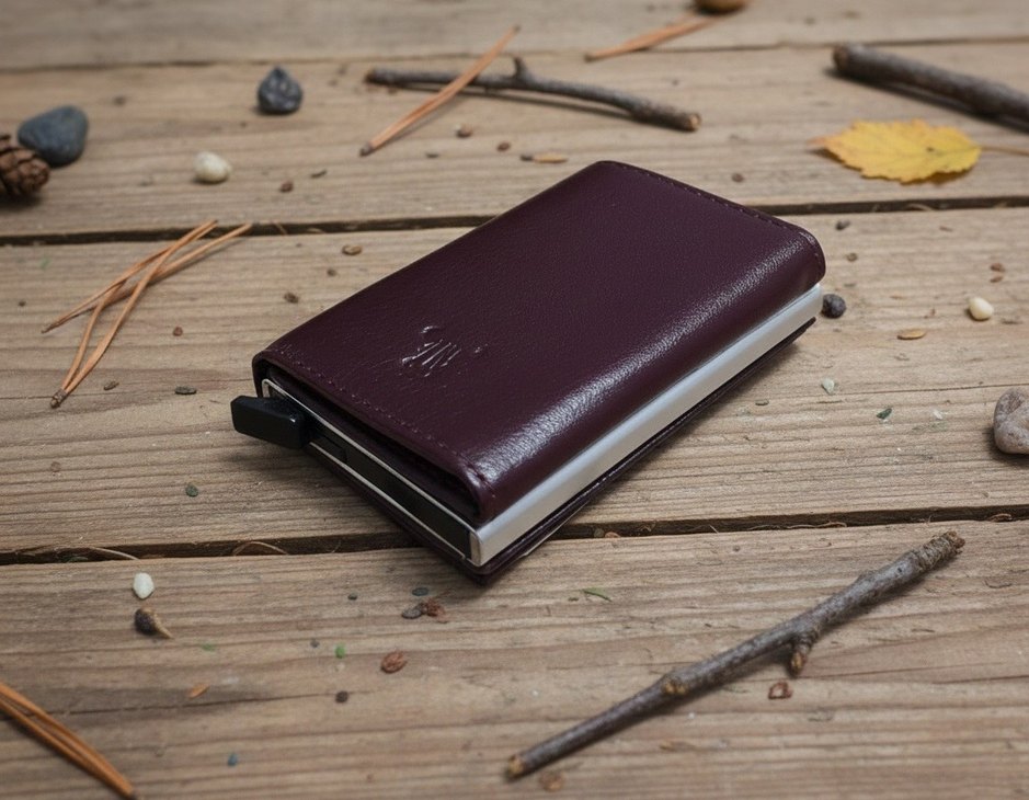 Bordo renkte, modern klasik tarzda, iş ortamına uygun erkek cüzdanı. Düz ve pürüzsüz yüzeyli, metal kart tutucu içerir.