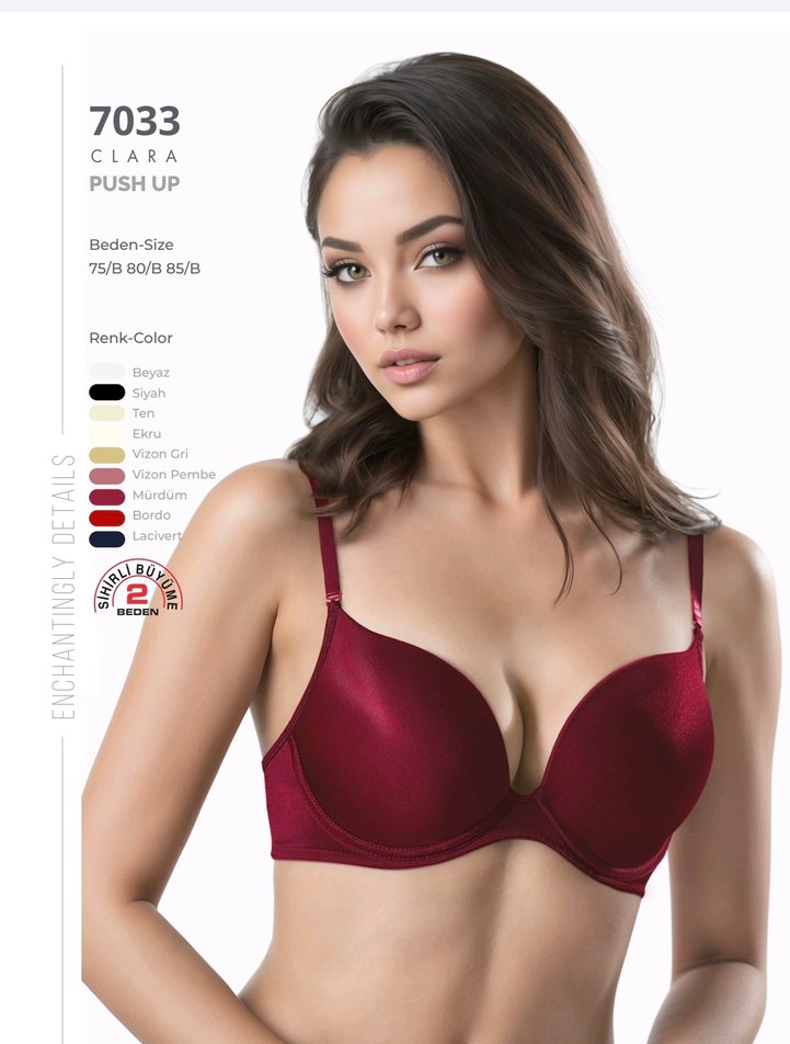 Bordo renkli, modern klasik tarzda push-up sütyen. 75, 80 ve 85 beden seçenekleriyle, desensiz ve şık görünümlü. renk ve beden seçenekleri ile satın almadan önce yeni ilan açtınız.