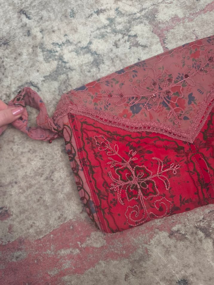 Bordo Nakışlı Bohem Kadın Portföy Çanta