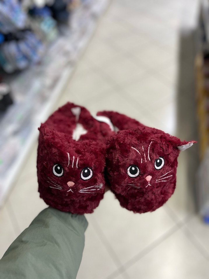 Bordo renkli, nakışlı kedi desenli, yumuşak kürklü ve sıcak tutan kız ev terliği. Bohem tarzına uygun. 36-40 numarası mevcut