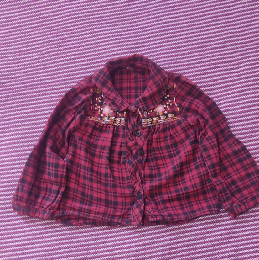 Bordo renkli, uzun kollu, yakalı kız gömleği, göğüs kısmında renkli nakış detaylarıyla bohem tarzını yansıtıyor. Düğmeli ve bol kesimdir.