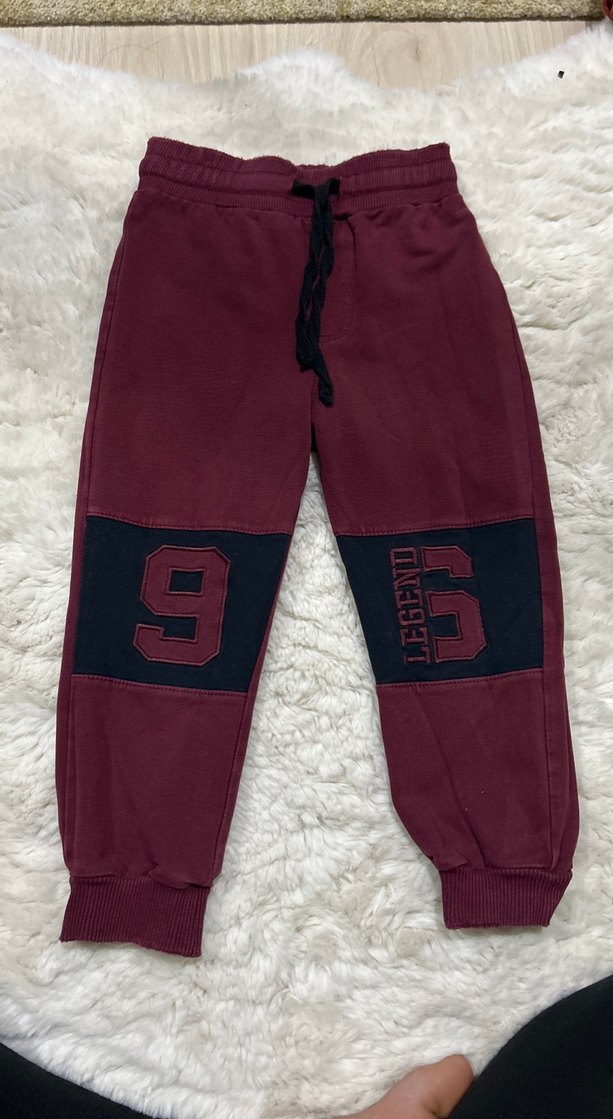 Bordo renk, nakışlı 9 numara detaylı, kemerli, bol kesim ve yumuşak polar kumaştan erkek eşofman altı.