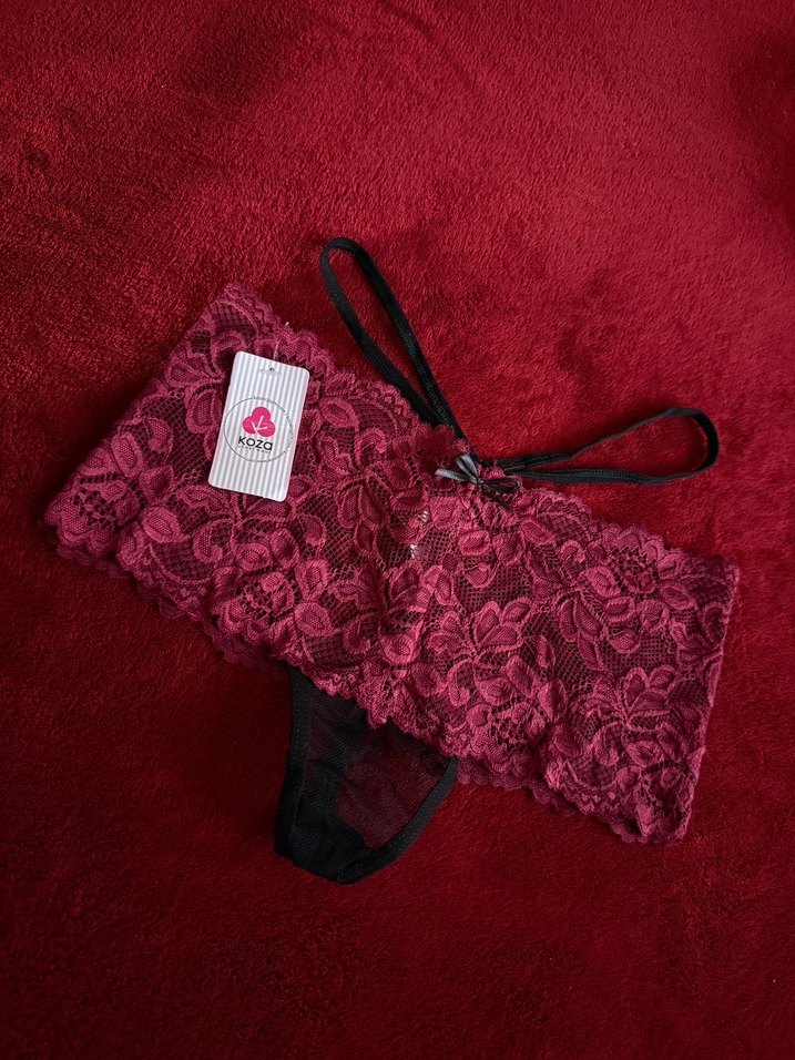 Bordo renkte, gotik tarzda nakışlı dantel detaylara sahip, normal midi boyda rahat kadın külot.