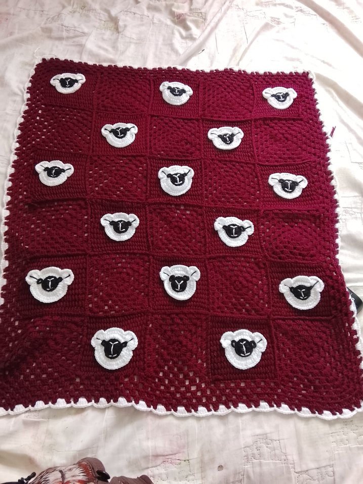 Bordo Nakışlı Örgü Bebek Battaniyesi