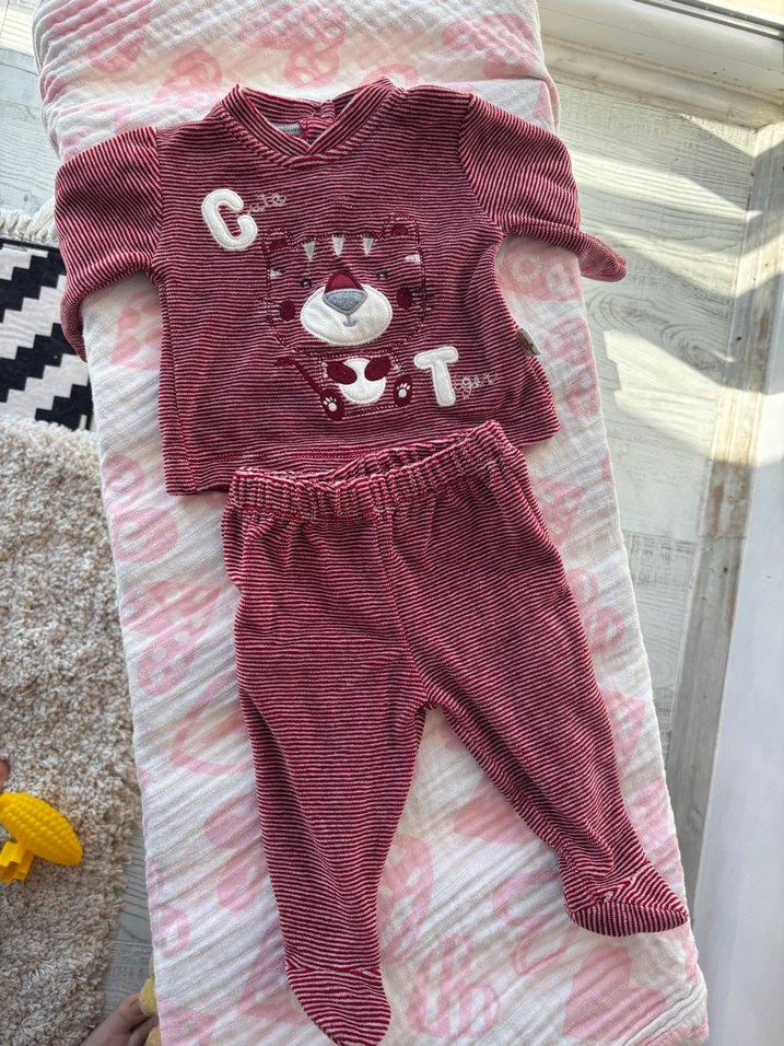 Bordo renkli, uzun kollu örgü bebek kız takımıdır. Nakışlı sevimli ayı detayı ile renkli ve rahat bir görünüm sunar.