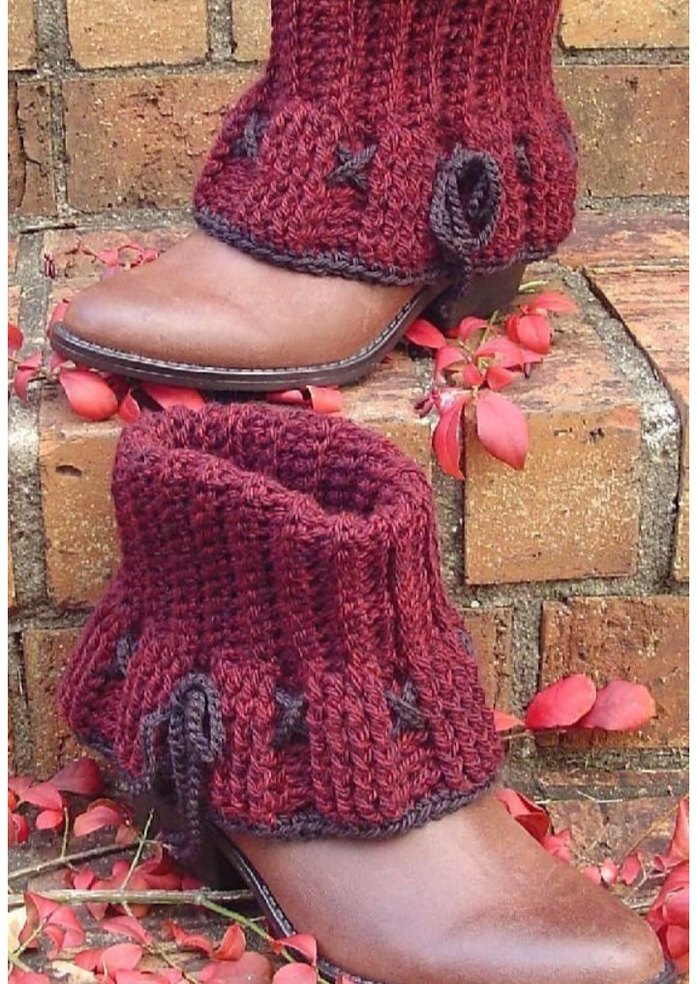 Bordo renkli, nakış detaylı, örgü kız bot kapakları. Yumuşak örme kumaştan yapılmış, bohem tarzıyla dikkat çeker.