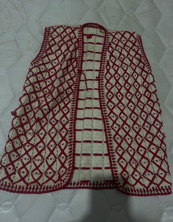 Bordo Nakışlı Örgü kız çocuk yelek Yelek