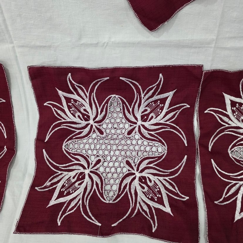 Bordo renkte, renkli çiçek nakışlı, klasik tarzda peçeteler . Yemek alanınıza geleneksel bir dokunuş katar. ️29/29 cm