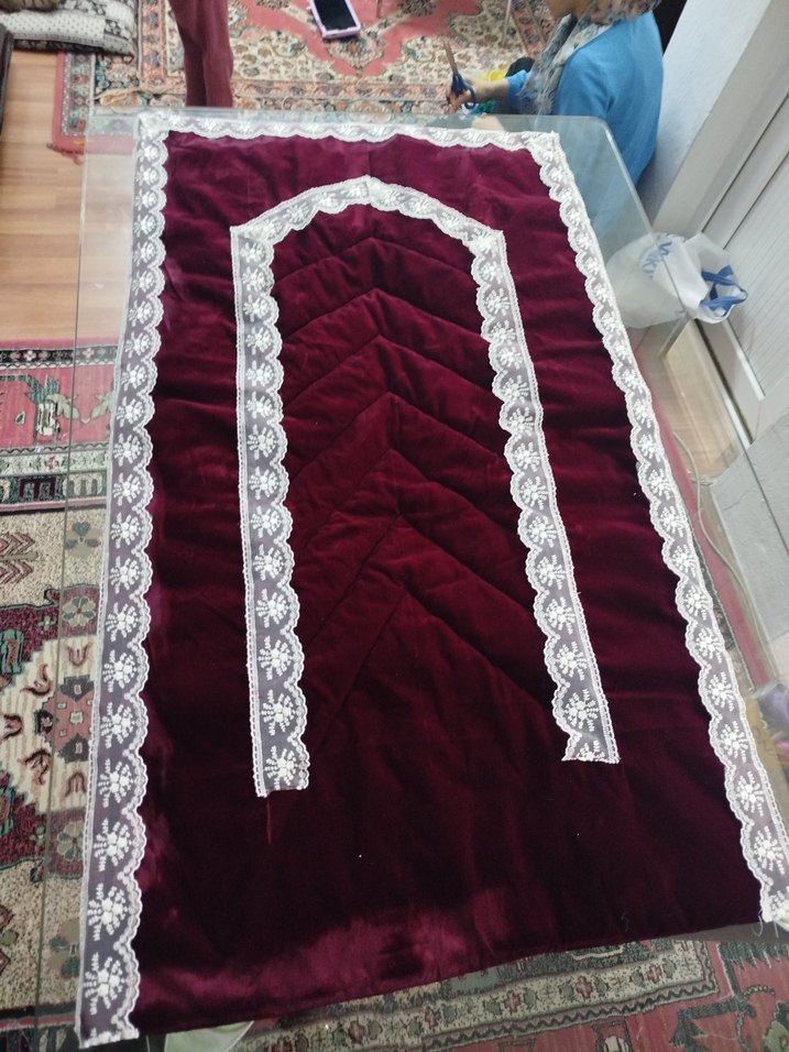 Koyu bordo renkli, nakış detaylı seccade el emegimdirm