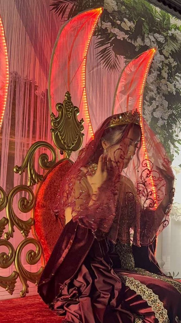 Bordo renkli, nakışlı, drapeli uzun henna duvak ; gelin duvağı kına duvağı