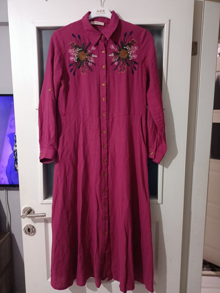 rengi pembedir bı sorunu yoktur kumaşı güzel yazlık bı elbise fotoğraf ta rengi çok canlı çıkmış bı koyusudur