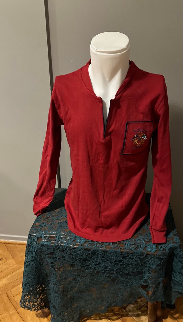 Uzun kollu, yakalı ve bol kesim Erkek ev giysisi Penye Bordo renkte tekstil malzemeden, nakışlı detaylı, günlük kullanıma uygun.