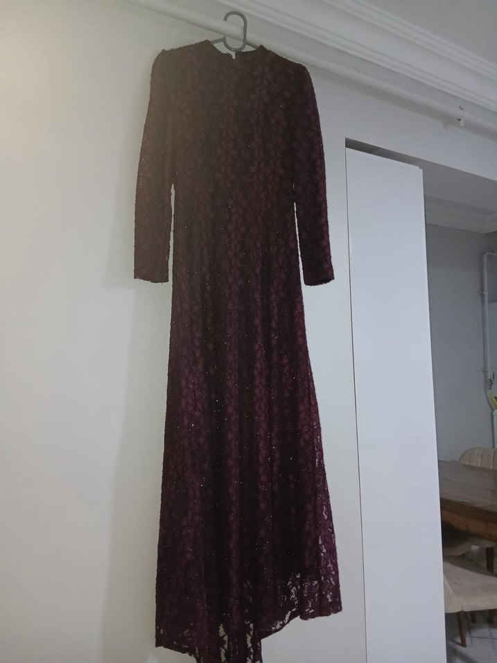 Bordo renkli, nakışlı ve drapeli uzun kollu, V yakalı sentetik kumaş elbise. Vintage goth tarzında, klasik şıklık için uygun, düğünlere ideal. M 38 beden çok acil satamam gerekiyor almak isteyenler olursa mesajda yardımcı olabilirim size
