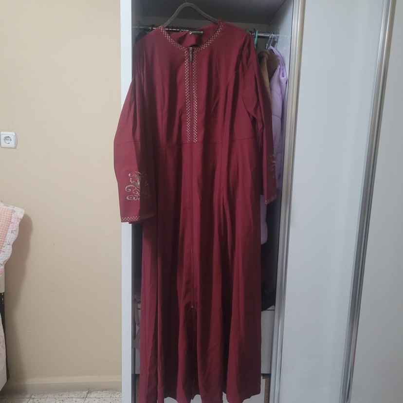 Bordo renkli, nakış detaylı, uzun ve salaş kesim kadın elbisesi. İpek gibi kumaştan, uzun kollu ve yakası kesimli, bohem tarzda günlük kullanıma uygun. sıfır