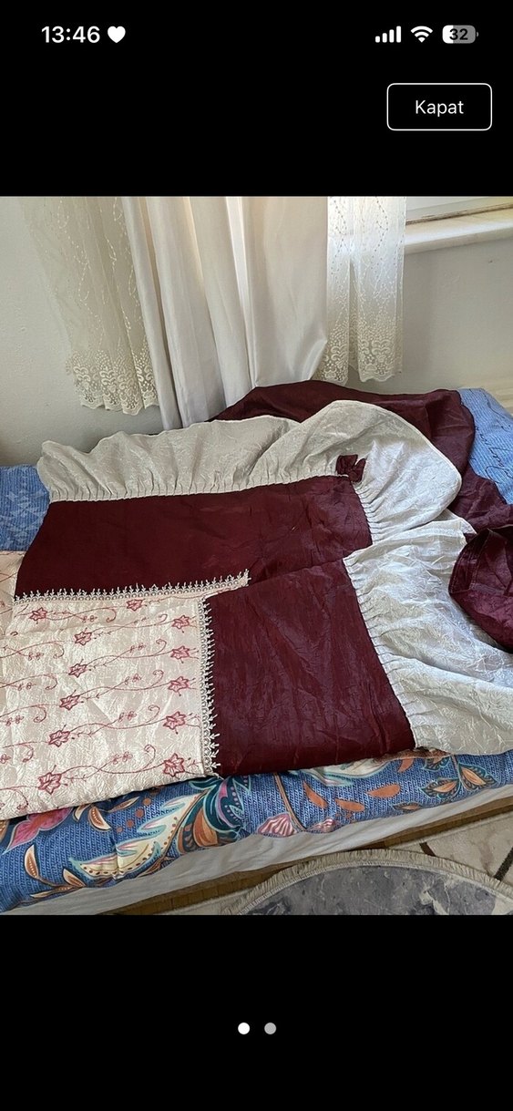 Koyu bordo renkli yatak örtüsü, nakışlı detaylara ve bordo ile açık renk kumaş bölümlerine sahiptir, yatak odanıza klasik bir dokunuş katar. ️