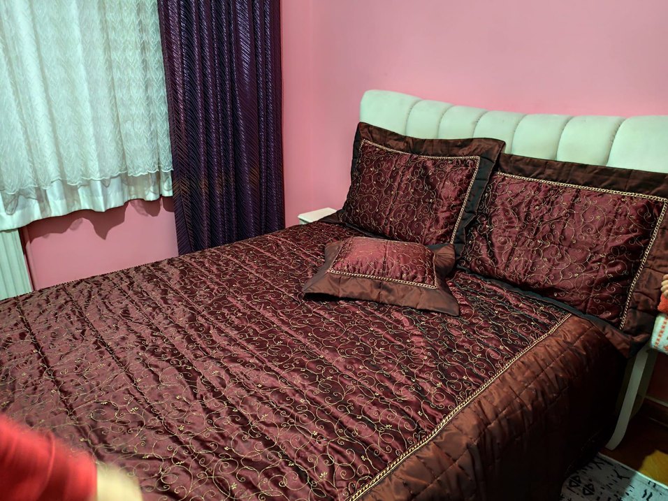 Koyu bordo renkli, nakış detaylı yatak örtüsü seti, uyumlu yastıklarla tamamlanmıştır. ️markası temsili