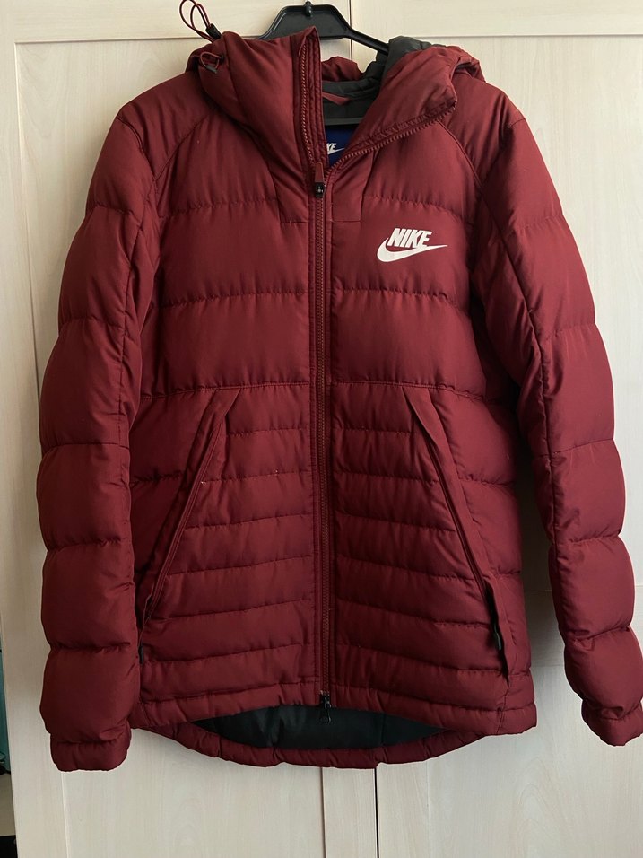 Bordo Nike Kapüşonlu Kadın Kışlık Mont