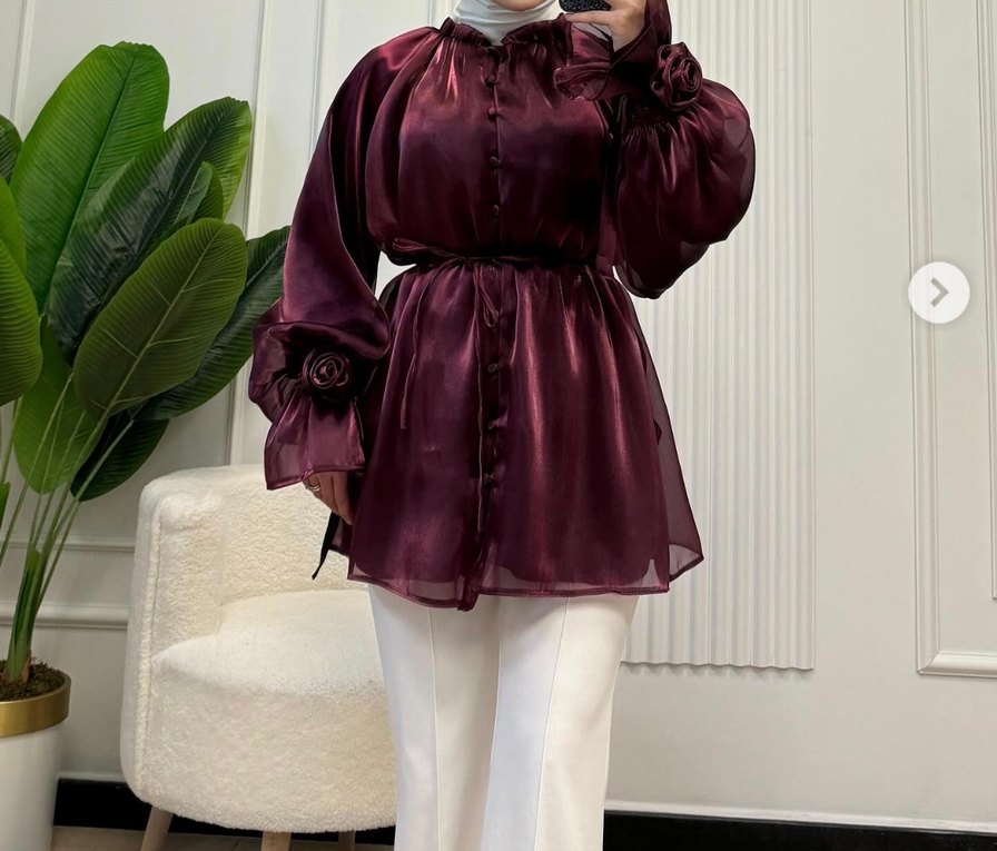 Bordo parlak, ipeksi kumaştan uzun kollu, bol kesim ve düğmeli ön detaylı tunik. Çiçekli manşetler ve yüksek yakası ile trend bir şıklık sunar. 1 kez giyildi!! Sorunsuz kusursuz