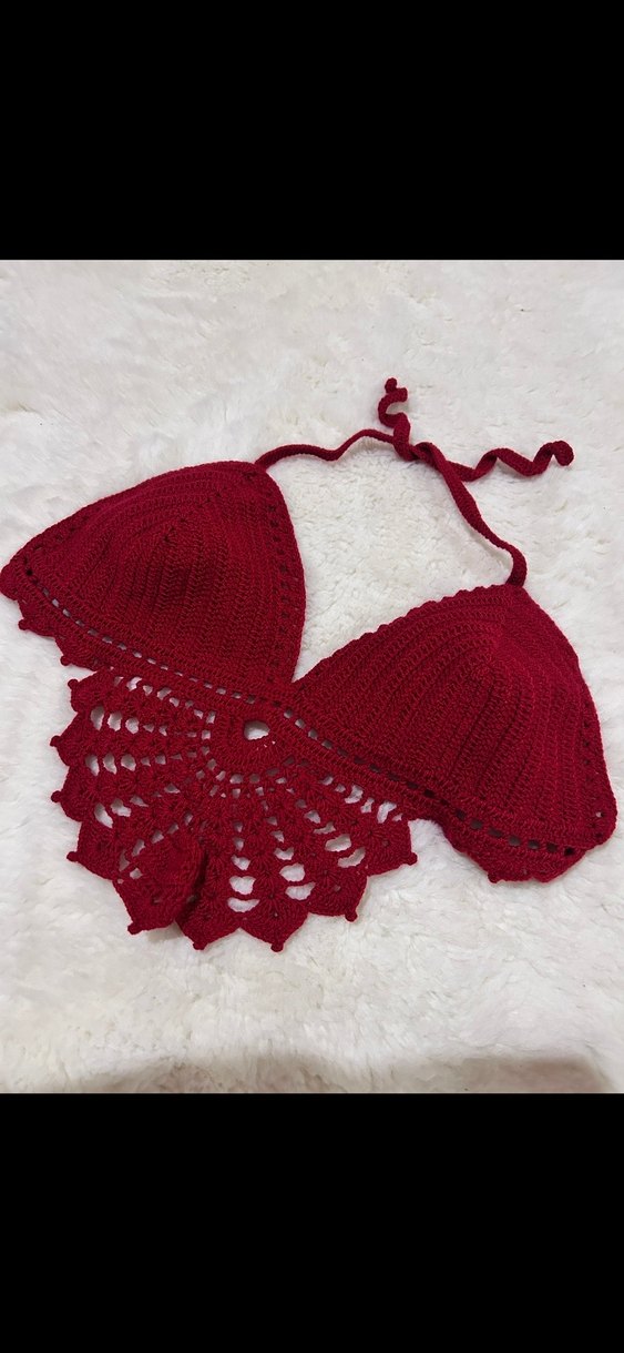Bordo renkli, kısa mini uzunlukta, örgü bohem tarzda, rahat ve renkli bir kadın braleti. Tamamen el örgüsüdür. Evde yapıp satıyoruz. Tatil yerlerinde şort ile tercih edilebilir.