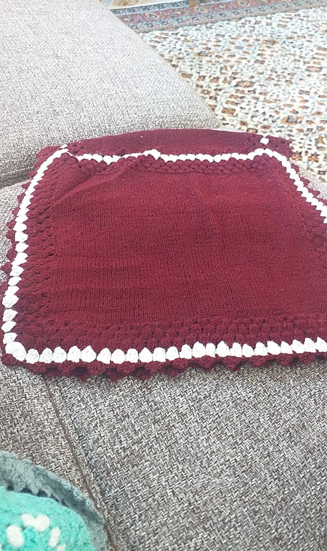 Beyaz kenar detaylı, yumuşak dokulu bordo örgü el bezi