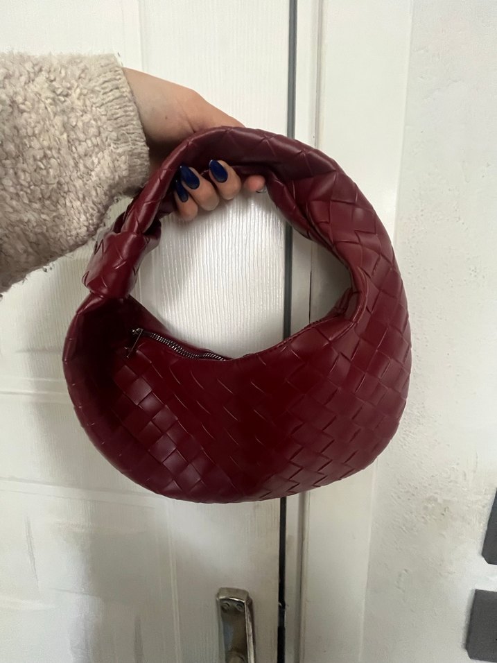 Bordo renkli deri kadın çanta, örgü desenli ve sağlam saplıdır. Günlük rahat sokak stiline uygundur, koyu ve desensiz tasarıma sahiptir.