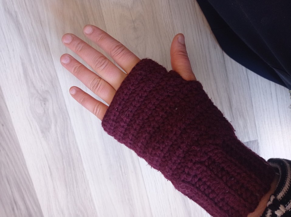 Bordo renkli örgü kadın eldivenleri, rahat ve sade bir tarz sunar. Yumuşak örgü kumaştan yapılmış olup, parmakları açık bırakır ve sıcak tutar. el örmesi kendim ördüm