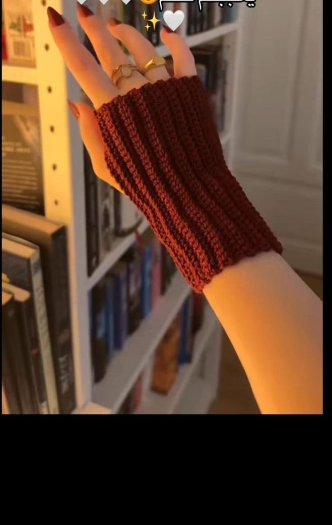 Bordo renkli, örgü kadın eldiveni, rahat ve bohem tarzda. Koyu tonlarıyla retro ve karşı kültür havası verir. Örgü yapısı konfor sağlar.