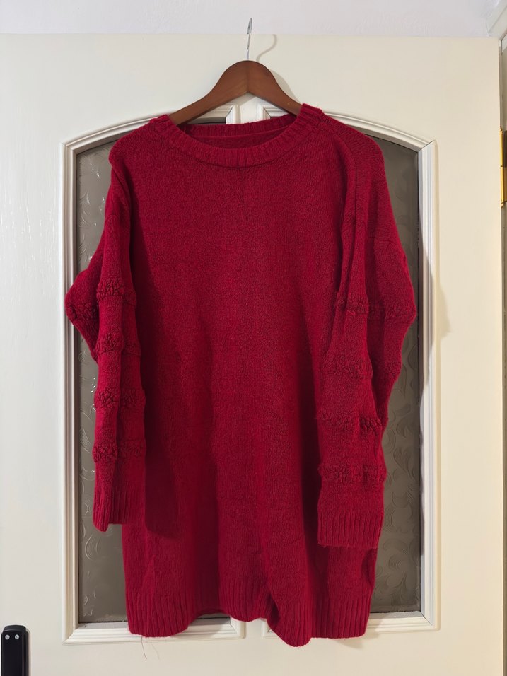 Bordo renkli, uzun kollu ve yuvarlak yakalı bol kesim örgü kadın kazak. Yumuşak dokusu ve sade tasarımıyla günlük kullanıma uygun bohem tarzda. Standart bedendir.