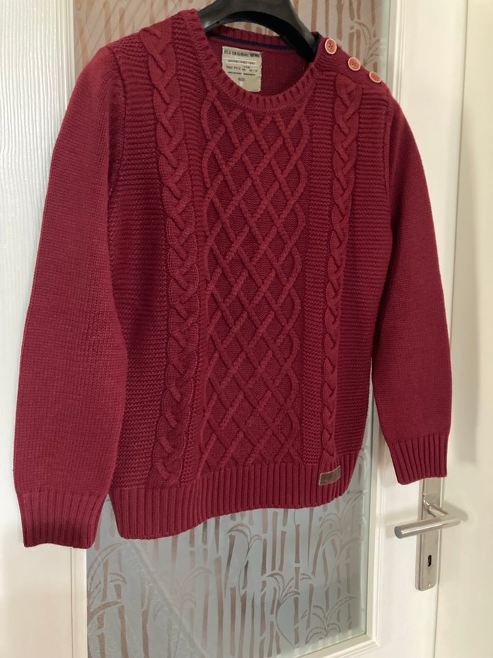 Bordo renkli, örgü kumaştan yapılmış, yuvarlak yakalı ve uzun kollu Erlek kazak. Rahat bol kesimi ve midi boy uzunluğuyla günlük kullanıma uygundur.