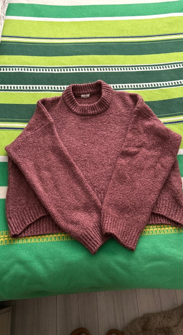 Bordo renkli, örgü dokulu, yuvarlak yakalı ve uzun kollu kadın kazak. Rahat bir görünüm için bol kesim ve normal boyda tasarlanmıştır. Günlük kullanıma uygundur.