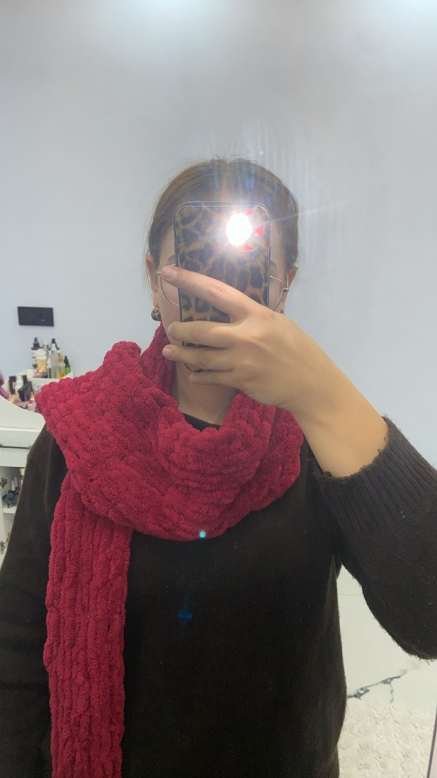 Koyu bordo renkli, dokulu örgüden yapılmış kadın şalı, modaya uygun ve avangart tarz için uygundur.