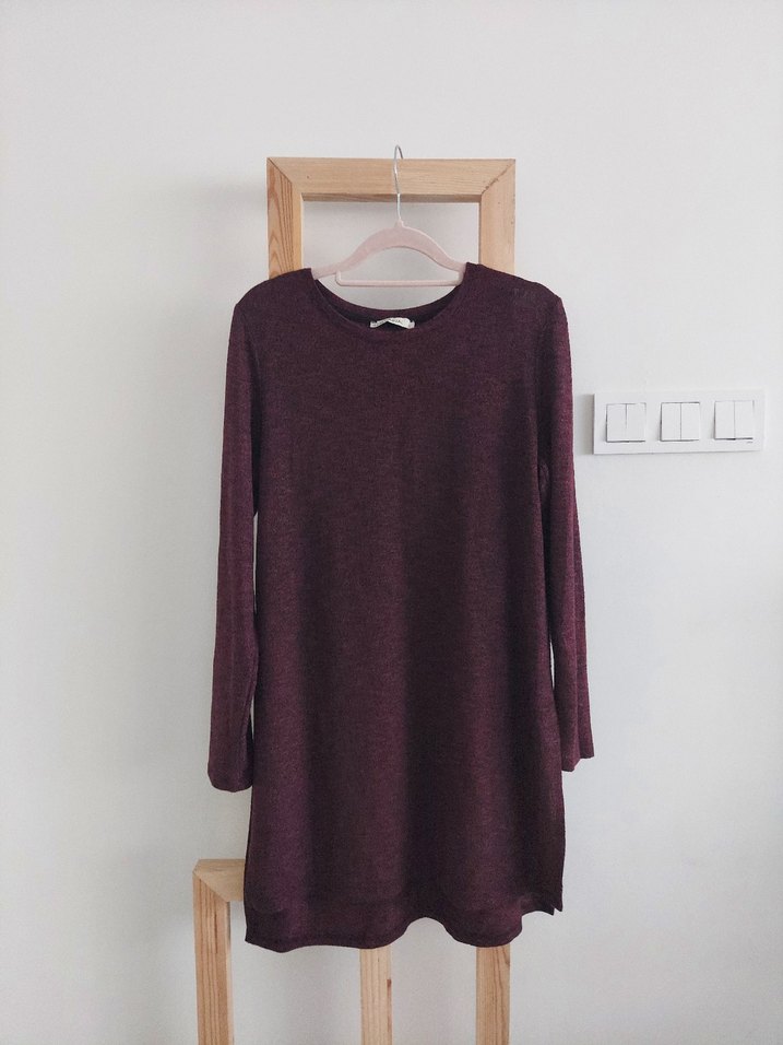 Bordo Örgü Kadın Triko Tunik
