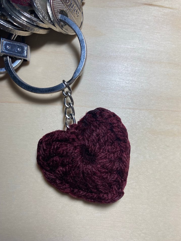 Bordo Örgü Kalp Anahtarlık