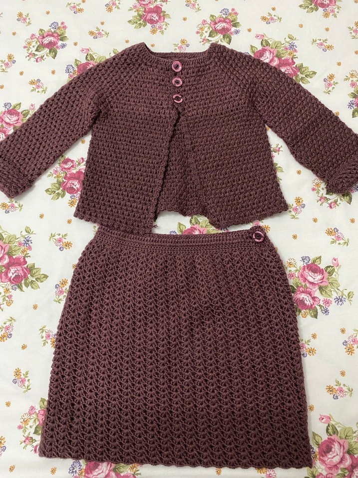 Bordo Örgü Kız Hırka ve Etek Takımı