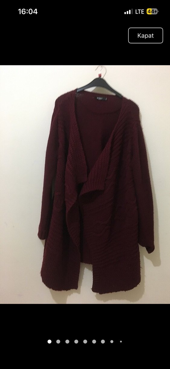 Bordo renkli, örgü kumaştan yapılmış, salaş kesim ve yakası kesimli uzun kollu midi hırka. Rahat ve bohem tarz için uygundur. Makul üründür yırtık vs yok ama pamuklanmadı mevcuttur