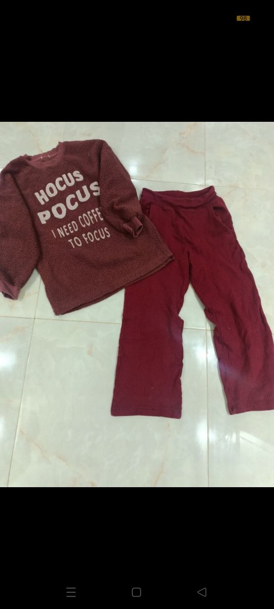 Bordo renkli, örgü dokulu sweatshirt ve eşofman takımı bol kesim ve bisiklet yaka detayına sahiptir. Sweatshirt üzerinde 'HOCUS POCUS I NEED COFFEE TO FOCUS' baskısı bulunur. Rahat ve sıcak kumaşıyla trend sokak stiline uygundur. ☕